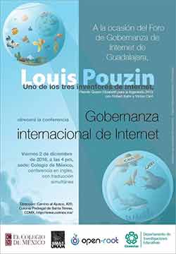 En avant-première du Forum de la Gouvernance de l’Internet (IGF) qui se tiendra à Guadalajara (Mexique) du 5 au 9 décembre 2016, Conférence de Louis Pouzin sur la Gouvernance Mondiale de l’internet - Mexico, COLMEX (www.colmex.mx).
